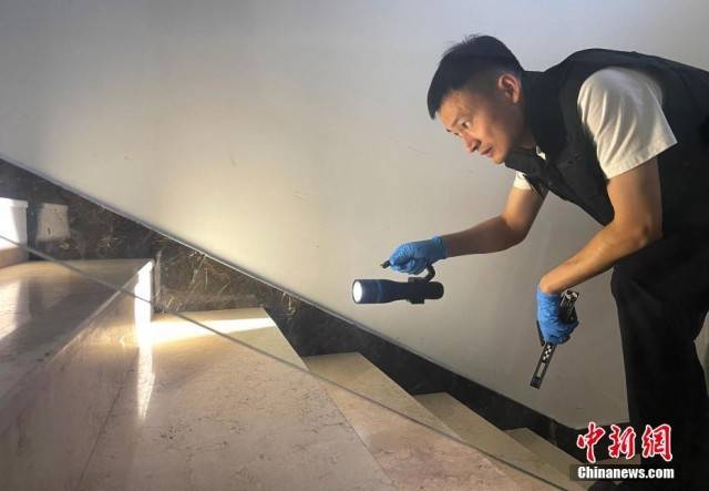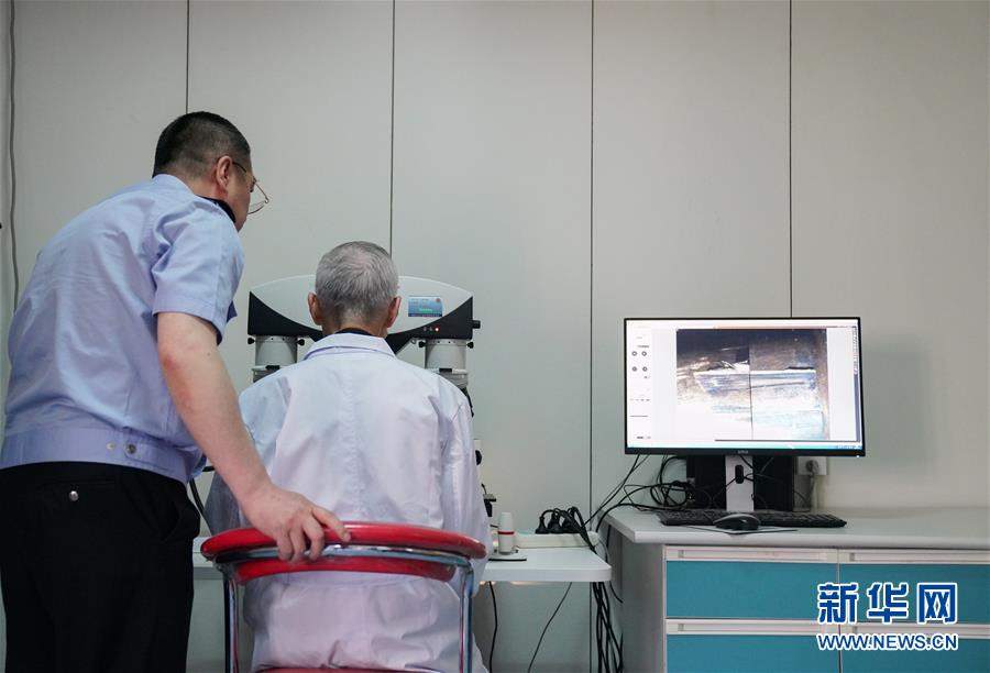 在公安廳刑事技術總隊實驗室中,刑偵痕跡檢驗專家在進行痕跡檢驗工作。(圖/新華網)