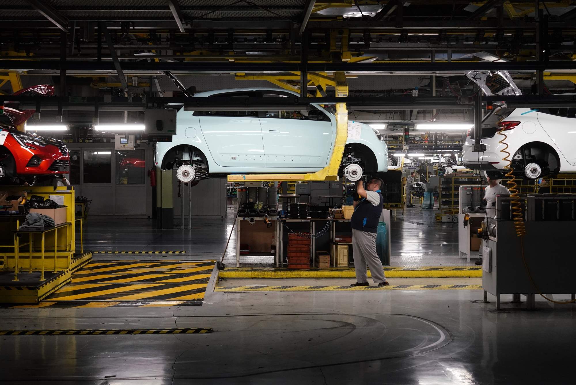 雷諾集團斯洛文尼亞工廠,流水線上的工人正檢查一輛燃油版Twingo(彭博社)