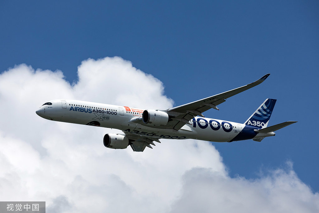 2024年2月20日,一架空客A350-1000在新加坡航展上進行飛行展示(視覺中國)