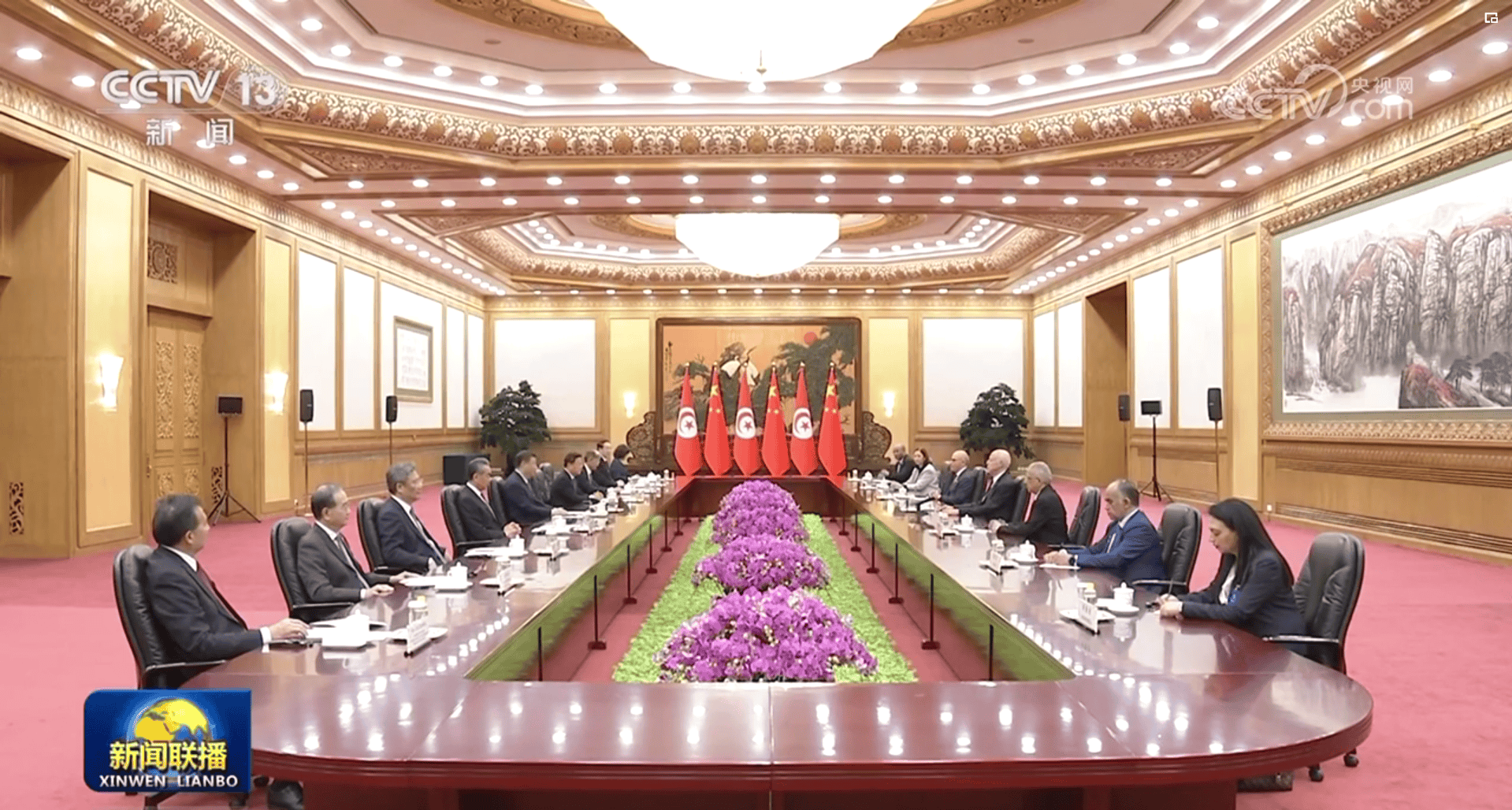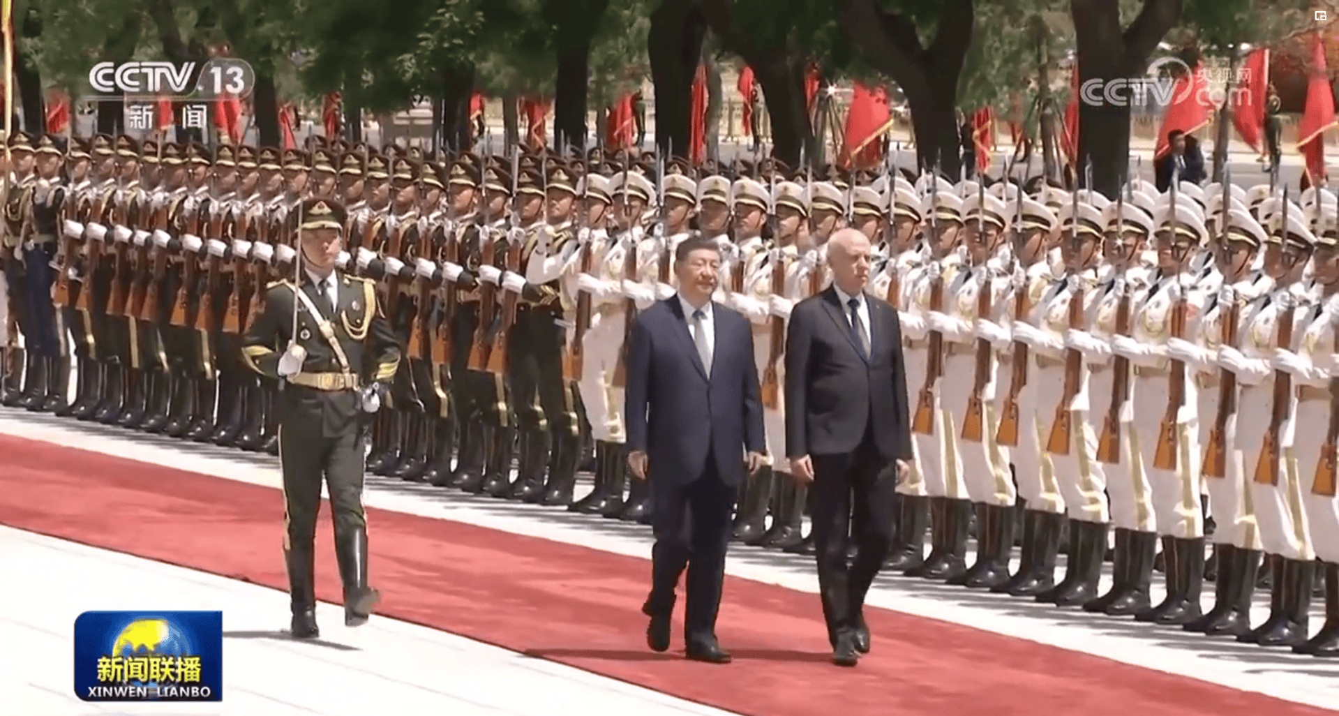 5月31日上午,國家主席習近平在北京人民大會堂同來華國事訪問並出席中國-阿拉伯國家合作論壇第十屆部長級會議開幕式的突尼斯總統賽義德舉行會談。兩國元首宣佈,建立中突戰略伙伴關係。