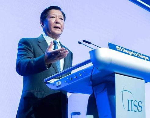 馬科斯5月31日在香格里拉論壇發表演講(英國國際戰略研究所拍攝)