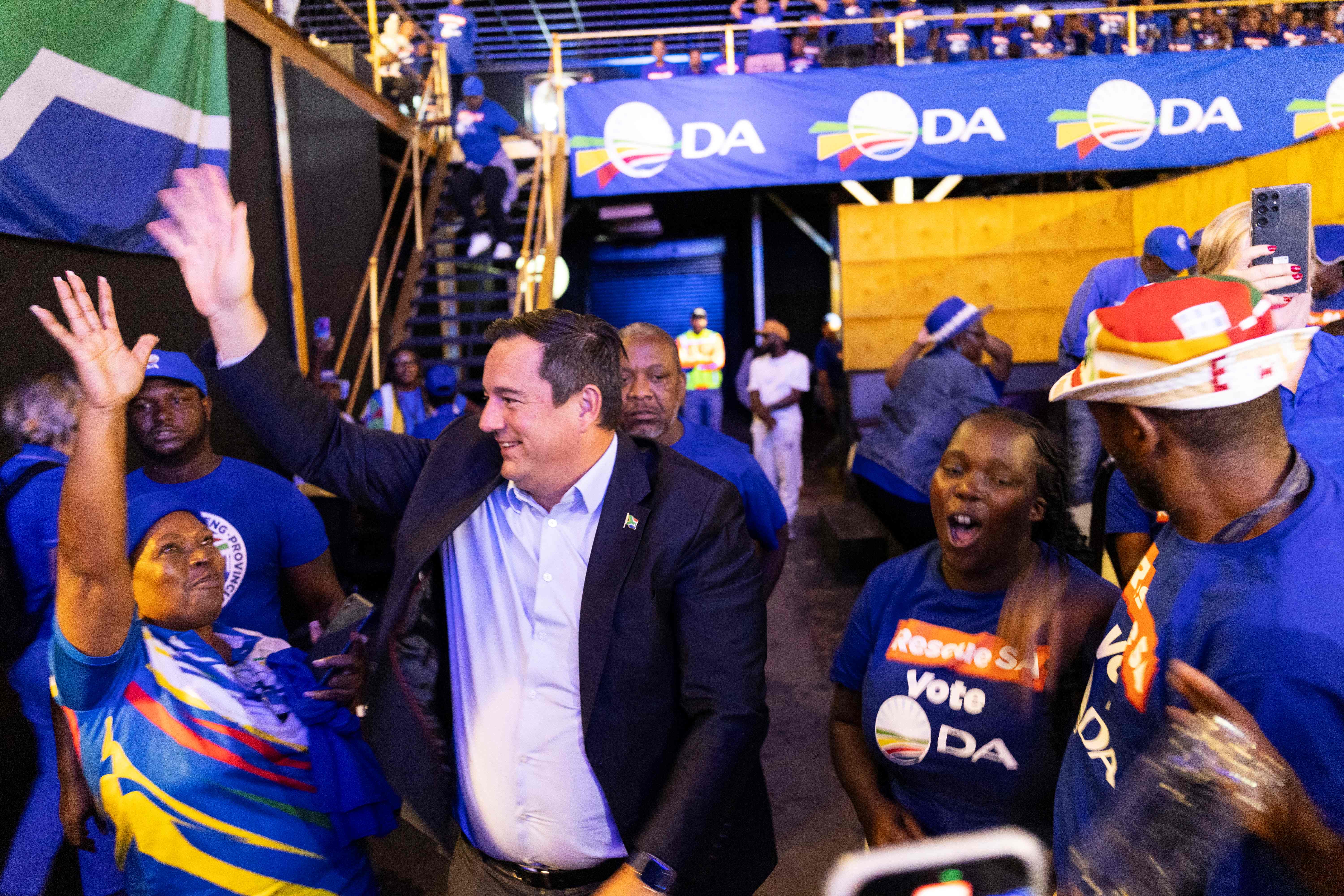 2024年5月9日,南非反對黨民主聯盟領袖約翰·斯汀霍森(John Steenhuisen)在大選前參加選舉集會。 圖自IC photo