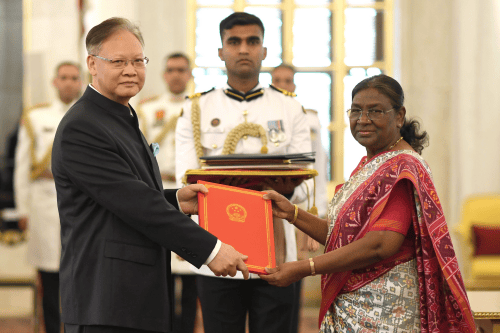 駐印度大使徐飛洪向印總統穆爾穆遞交國書(中國外交部)