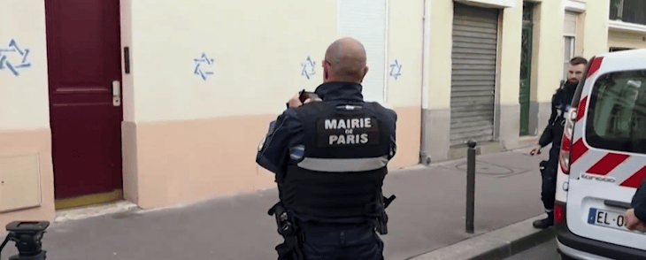 巴黎一社區牆壁上被噴塗藍色的“大衞之星”(視頻截圖)