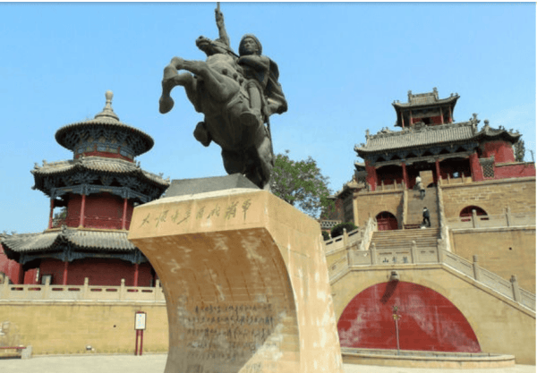 河南大旱,李自成乘機率農民起義軍推翻了明朝的統治,圖為李自成雕像