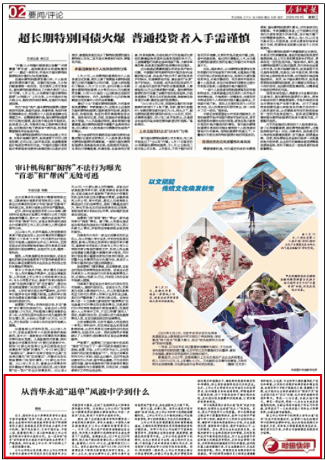除上市公司和審計機構要從普華永道“退單”風波中吸取教訓外,監管部門也應加強對審計機構的監管和評估,加大對違法違規行為的查處力度,採取有力舉措提高其違法成本,督促其歸位盡責,為資本市場健康發展提供有力保障。