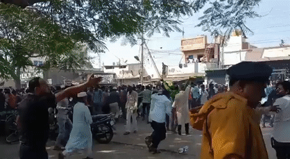 穆斯林與印度教徒對峙,儘管警察在維持秩序,但雙方依舊劍拔弩張,甚至互相扔擲石塊