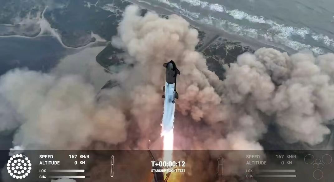 本次“星艦”起飛瞬間,從左下方圓點可見第一級有一台發動機未點火