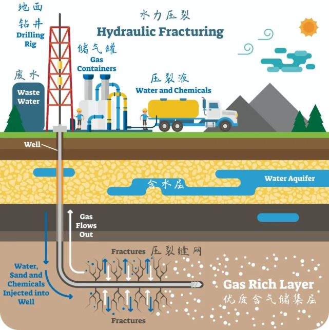 頁岩氣水力壓裂示意圖 圖源:中科院地質與地球物理研究所