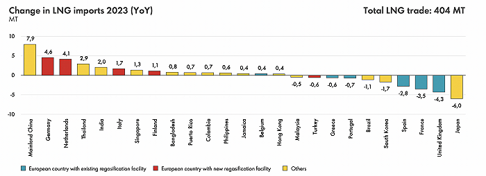 2023年各國LNG進口同比變化。 數據來源:殼牌《LNG前景報告2024》