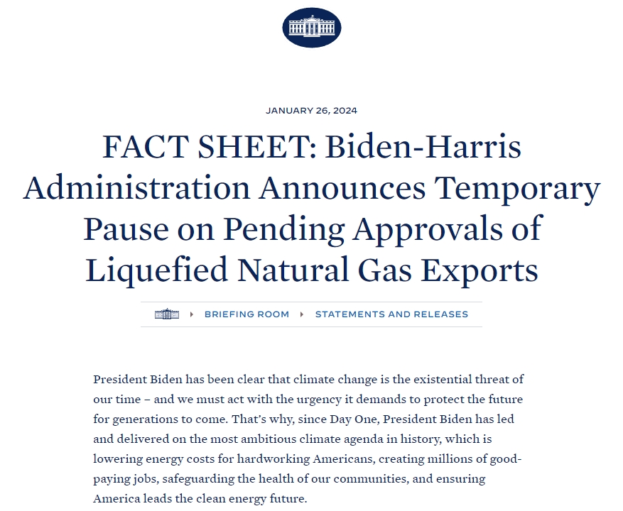 拜登政府關於決定暫停批准液化天然氣(LNG)大規模出口的情況説明