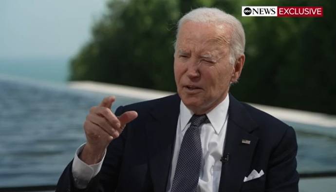 拜登6日在法國諾曼底接受ABC採訪(視頻截圖)