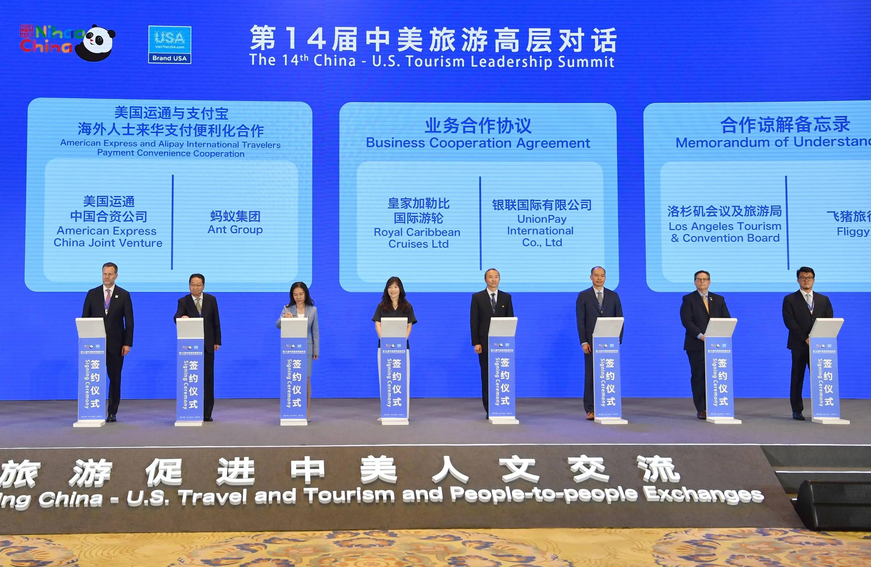 第14屆中美旅遊高層對話簽約儀式現場。 新華社記者 邵瑞 攝