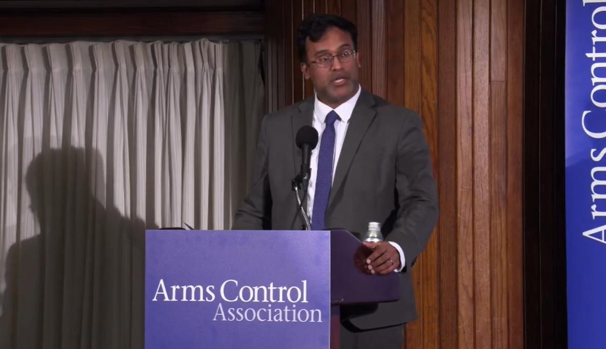 白宮國安委員會高級主任普拉納伊·瓦迪7日在軍控協會發表講話(視頻截圖)