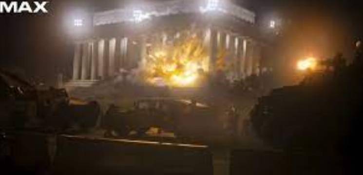 第二個場景是電影最後一部分首都華盛頓的戰爭場面——叛軍炮轟林肯紀念堂。如果去過華盛頓旅遊的人一定會被美國首都一系列政府建築的風格所吸引,它們幾乎都是清一色的仿羅馬建築,尤其是從國會到方尖碑再到林肯紀念堂的那條中軸線——無論紐約的高樓大廈多麼摩登,華盛頓特區都在用行動告訴你,美國就是那個赤裸裸宣稱自己是西方文明新燈塔、新大陸上新羅馬的國家。如果説叛軍的目的只是幹掉總統、佔領特區,那麼炮轟這樣一個“景點”顯然沒有實際意義,但導演安排了,自然是象徵性大於功能性。