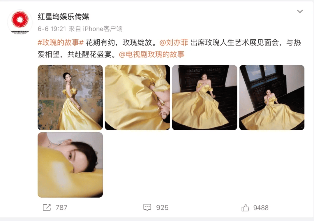 紅星塢官方微博自2015年起幾乎只發布與劉亦菲相關的消息,雖然紅星塢官微曾在2016年11月後一度停更,但在劉亦菲主演《夢華錄》後又恢復了更新。