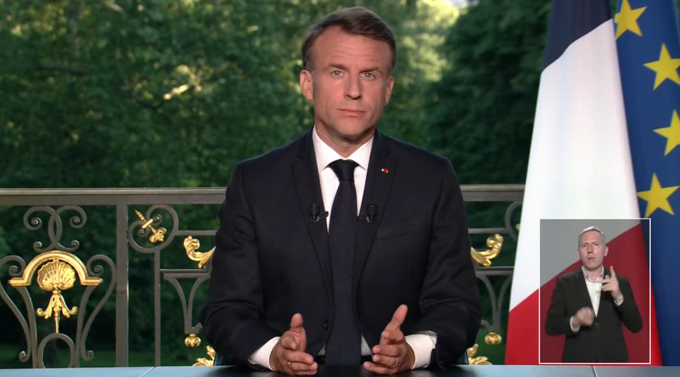 法國總統馬克龍發表講話,宣佈解散國民議會(視頻截圖)