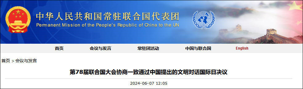 6月10日是全球第一個“文明對話國際日”。這個日子,由第78屆聯合國大會在2024年6月7日協商一致通過決議設定,這一決議由中國倡議。