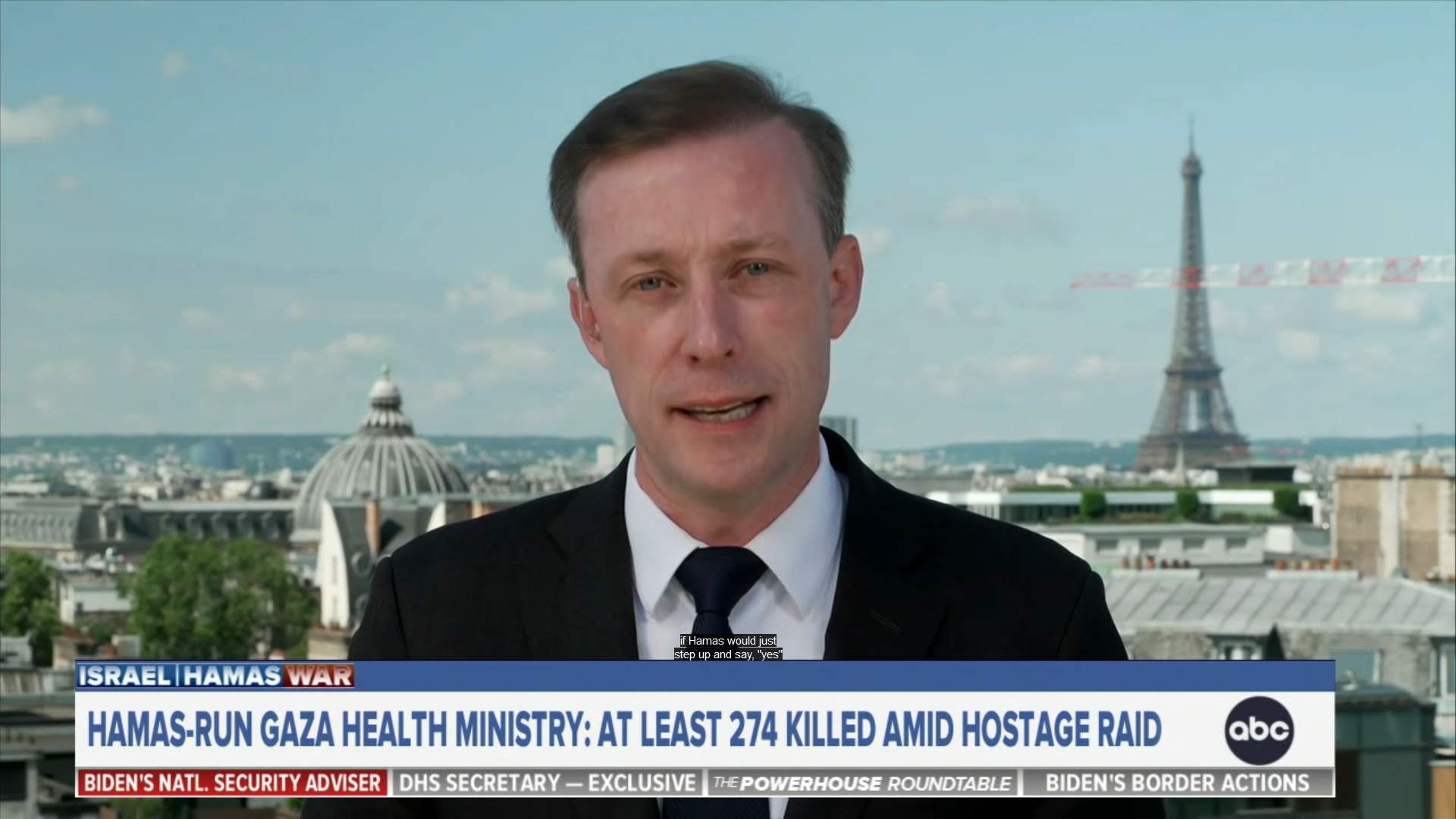 當被問及即使有這麼多平民死亡,美國是否支持以色列以同樣的方式進行更多類似的軍事行動,沙利文稱,美國將支持以色列採取措施營救被扣押人員,並“將繼續與以色列合作”。
