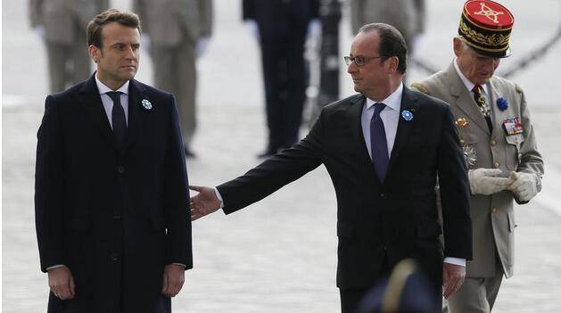 2017年5月,馬克龍與奧朗德完成交接,正式就任總統。(資料圖)