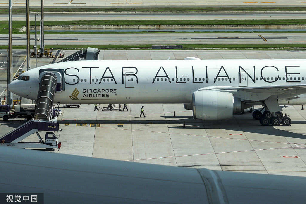 當地時間5月21日,新加坡航空一客機備降泰國曼谷素萬那普機場。(視覺中國)