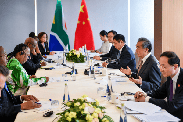 王毅祝賀南非平穩順利舉行大選,祝賀非洲人民國民大會繼續作為第一大黨在南非政壇發揮主導作用,相信非國大將保持初心,堅定信念,繼續帶領南非人民在建設團結、穩定、繁榮新南非道路上取得更大成就。王毅説,中南是全面戰略伙伴,兩國關係在元首戰略引領下保持蓬勃發展,進入“黃金時代”。去年,習近平主席對南非進行國事訪問並出席金磚國家領導人會晤,同拉馬福薩總統達成重要共識,開啓構建高水平中南命運共同體的新時代,金磚機制在南非實現歷史性擴員,進一步鼓舞了全球南方國家聯合自強。