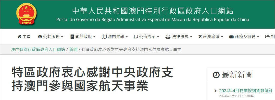 聲明指出,此次國家第四批預備航天員選拔為澳門帶來關鍵突破——澳門首位載荷專家誕生,這彰顯了中央政府對澳門科技創新的高度重視和支持,讓澳門在航天科技領域邁出了重要一步,是澳門特別行政區的榮譽,也向澳門青年人發出了強烈的鼓舞訊息。