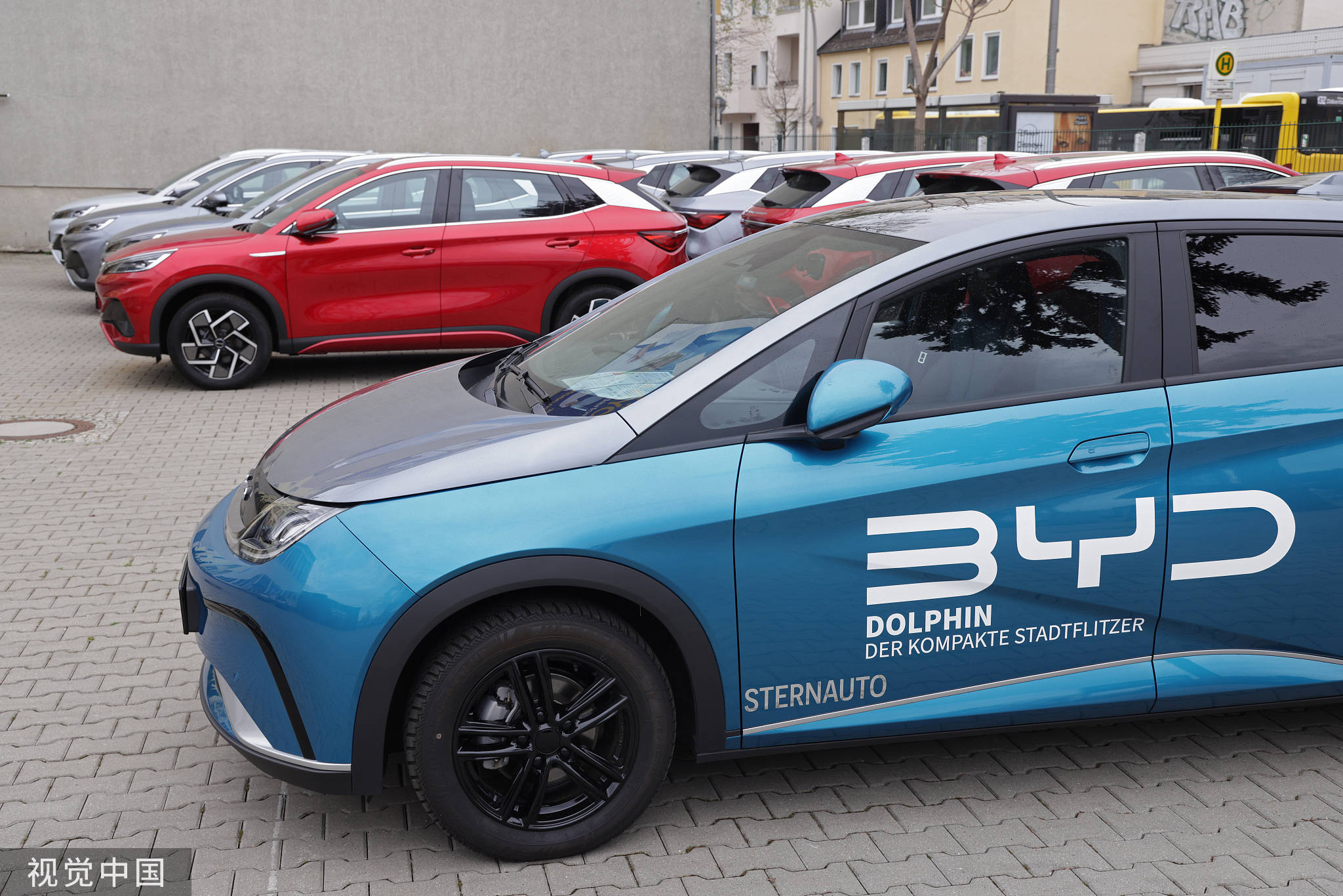資料圖:德國柏林的比亞迪電動汽車經銷店(視覺中國)