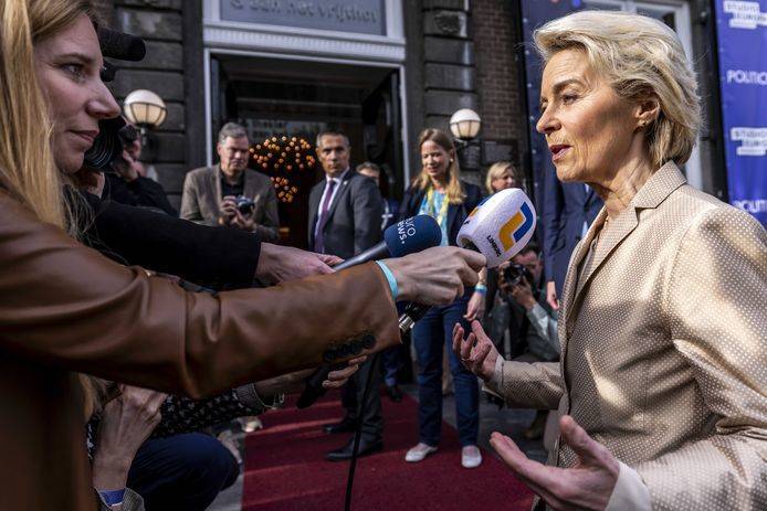 馮德萊恩(右)4月29日出席歐洲議會選舉辯論。圖片來源:荷蘭媒體