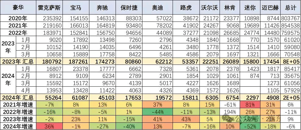 據乘用車市場信息聯席會近期發佈的數據顯示,2023年,三家豪華車企的進口銷量均有着高於10%的同比上漲,今年1—4月,寶馬、奔馳、奧迪也仍是中國進口車的主要支撐。