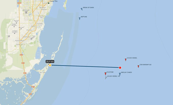 根據跟蹤數據,俄羅斯船隻在向南航行時,可能到達了距離佛羅里達海岸不到30英里的地方。為了應對美國海軍的阿利伯克級驅逐艦“特拉克斯頓”號 (DDG-103)和“唐納德·庫克”(DDG-75)出現在佛羅里達羣島以東的國際水域,美國海岸警衞隊的1艘傳奇級巡邏艦也前往相關海域監視。除了美軍以外,加拿大皇家海軍的1艘哈利法克斯級護衞艦也參與監視。