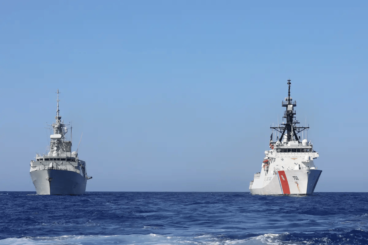 資料圖:在大西洋的阿利伯克級驅逐艦“特拉克斯頓”號 (DDG-103)和哈利法克斯級護衞艦(社交媒體)
