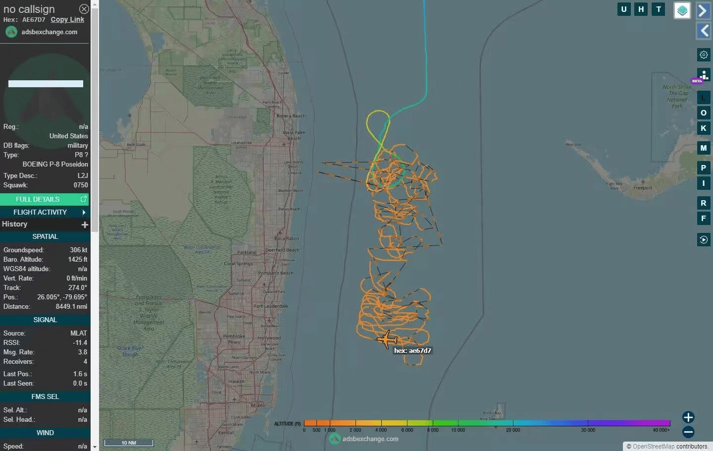 根據開源的航空信息和艦艇信息顯示,美軍的多架P-8A戰機在佛羅里達外圍進行巡邏。