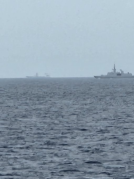 俄海軍和伴隨監視的美加軍艦(社交媒體)