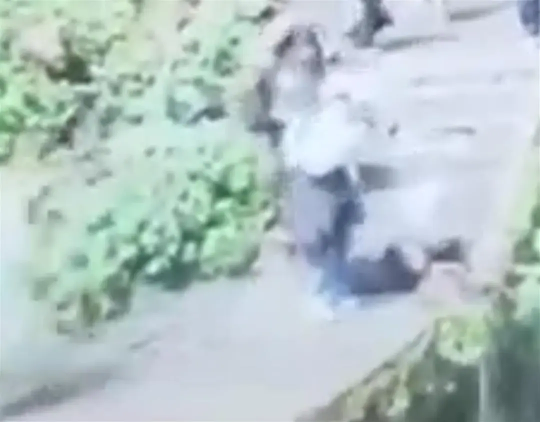 據網友發佈的視頻顯示,一名遊客走在台階上時,突然被一塊飛石砸中倒地。