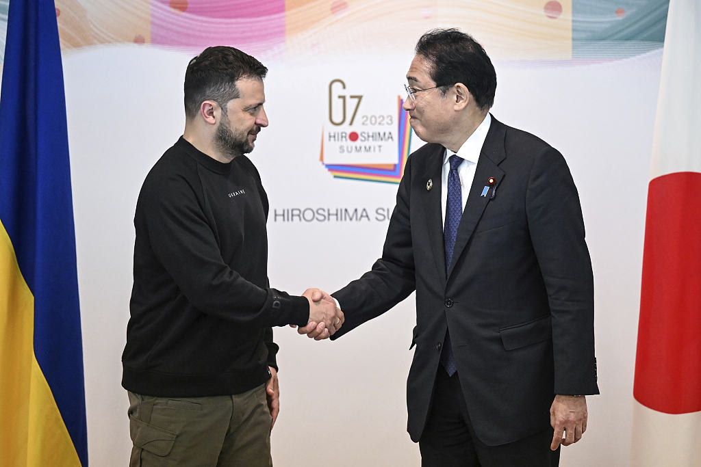 去年5月,烏克蘭總統澤連斯基和日本首相岸田文雄在G7峯會期間握手(視覺中國)
