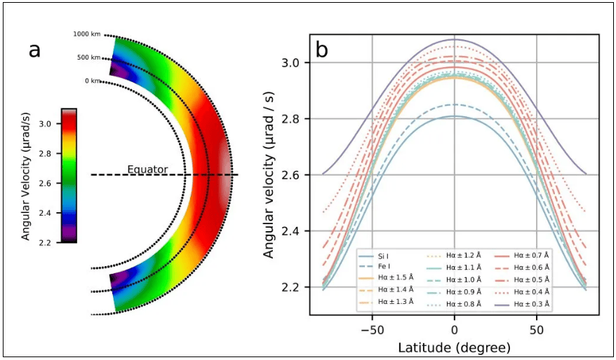 論文第一作者、南京大學博士生饒世豪介紹,恆星是一個巨大的等離子體球體,它的自轉不是剛性的,不同部位的自轉存在差異性。作為離我們最近的恆星,太陽是研究恆星自轉的重要標本。