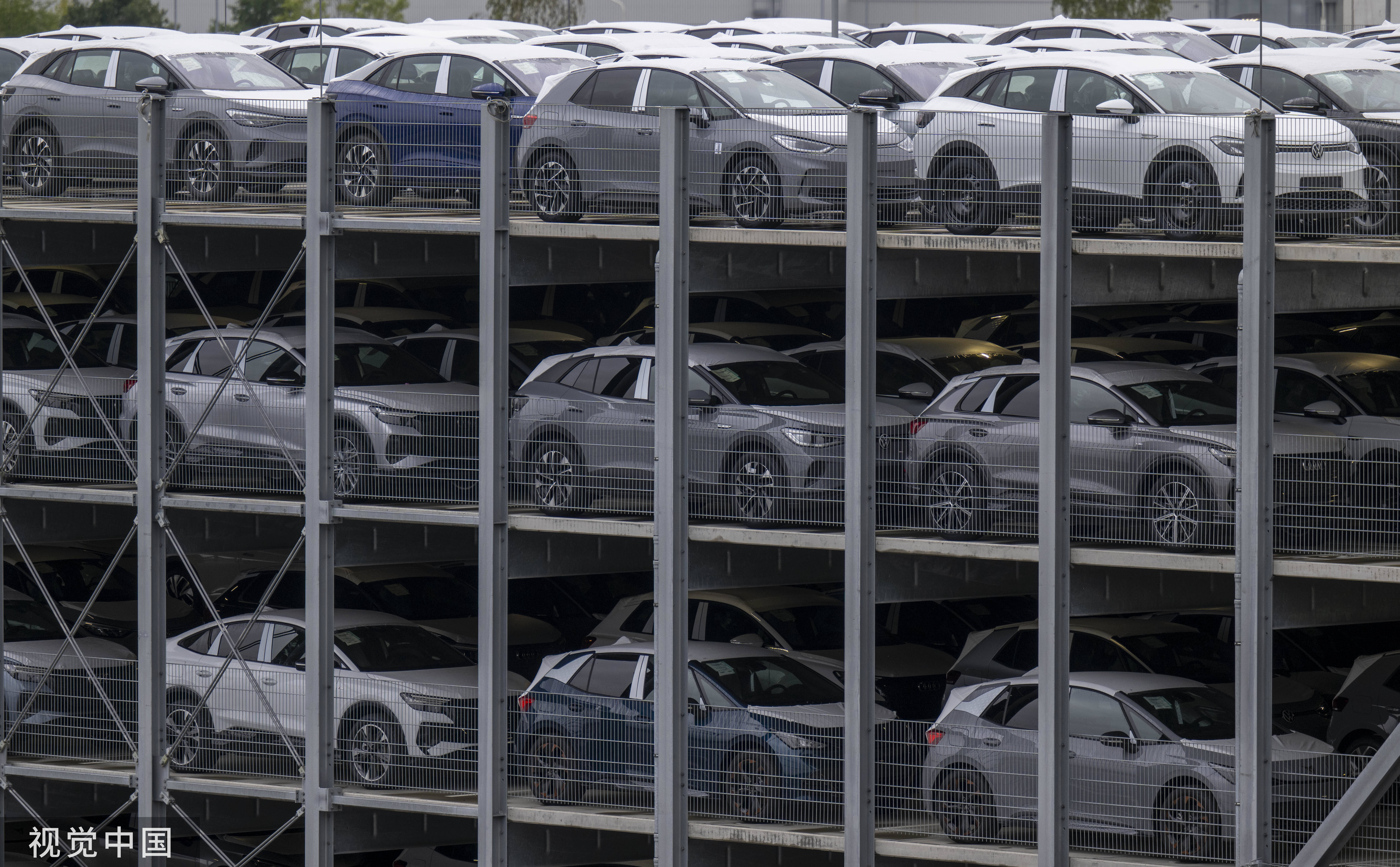 存有大眾電動車的停車場 圖片來源:視覺中國