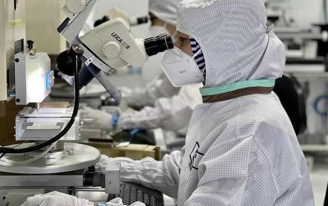 友尼森員工正在封裝測試芯片(新加坡《海峽時報》)
