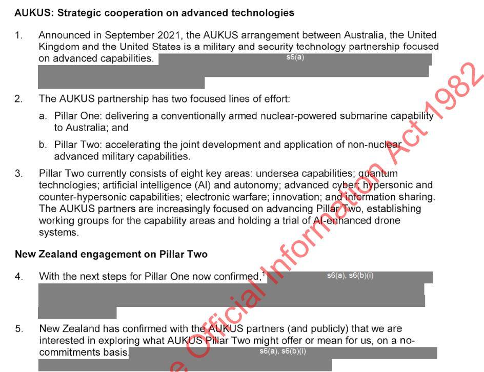 但拉克森政府卻有點想騎個牆,想讓新西蘭加入AUKUS的“第二支柱”。AUKUS有兩個支柱,賣核動力武器是第一支柱,而第二支柱賣的就是“非核”的軍事技術,其中包括水下軍事能力、軍用AI、超音速武器和反超音速武器設備、電子戰設備和信息分享等。