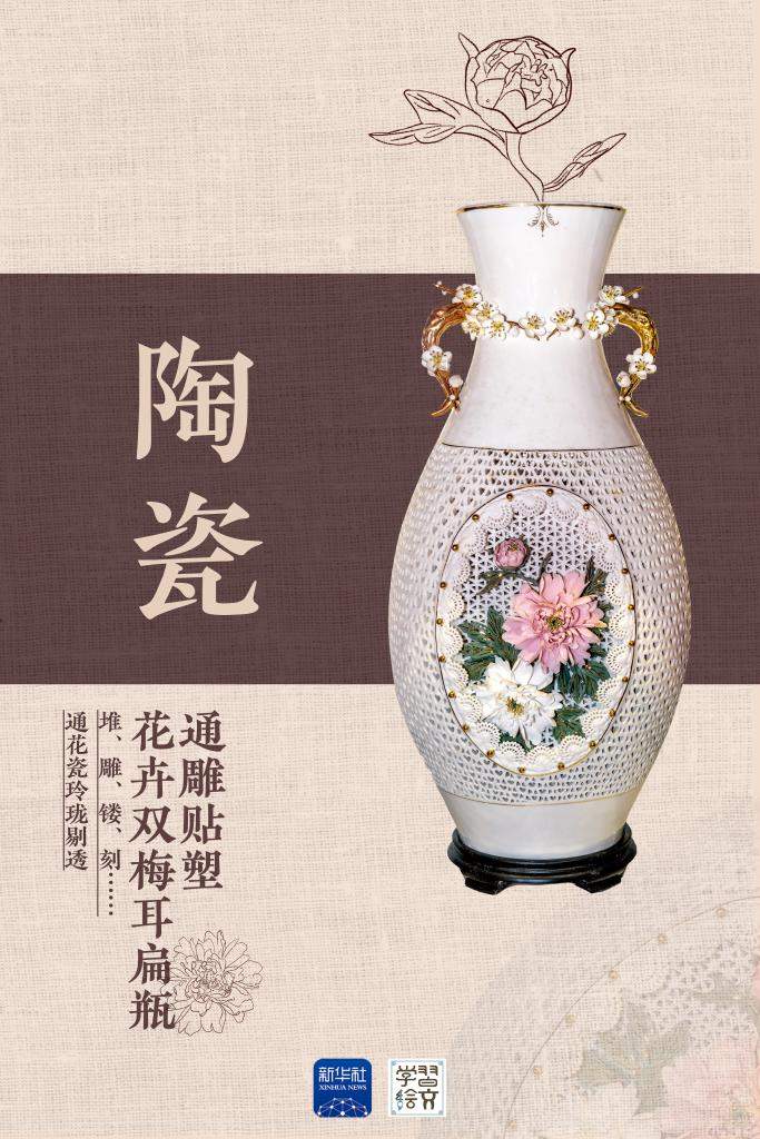 通花瓷器鏤空可達5層之多,或施於釉上彩繪,或與浮雕、立雕相結合,或配以色土、腐蝕金等裝飾,玲瓏剔透,娟麗秀美。有的瓷瓣片下水不沉,落地不碎。