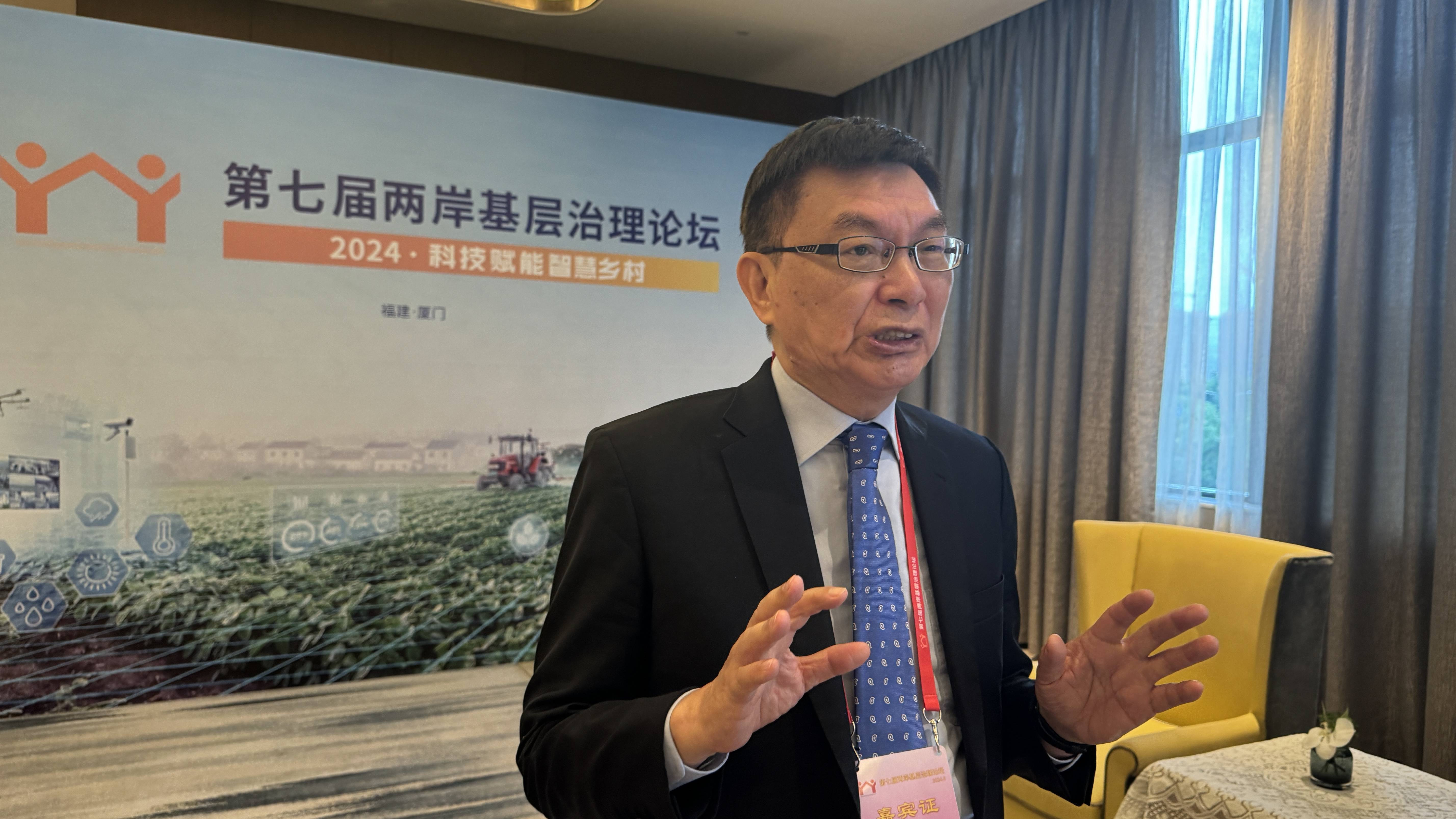 台灣大學哲學系教授苑舉正在第七屆兩岸基層治理論壇期間和媒體對話(觀察者網)