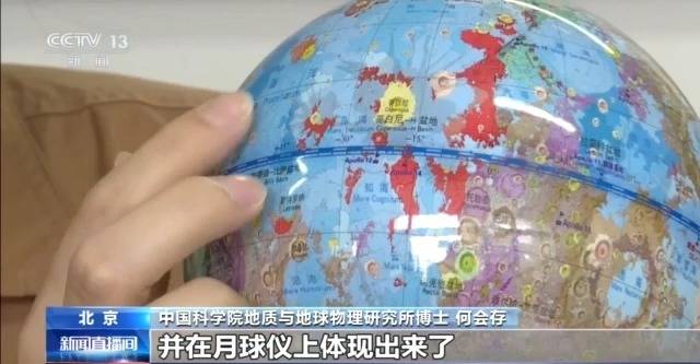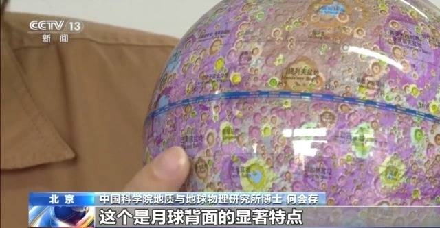 中國科學院地質與地球物理研究所博士 何會存:雖然我們實際上看到的月球基本上是黑白灰這種色調的,但是因為我們做地質研究是需要了解月球的一個個地質單元是什麼樣子的,所以我們就把月球的地質單元做了精細劃分,並在月球儀上體現出來了。從月球儀上也能看出來月球正面和背面的顯著不同,月海還有這些洋主要是在月球正面出現了,月球背面月海和洋出現的頻率就顯著降低了,取而代之的是這種密密麻麻的撞擊坑,這個是月球背面的顯著特點,它早期遭受了非常多隕石的撞擊,“千瘡百孔”。