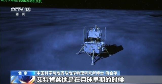 中國科學院地質與地球物理研究所博士 何會存:艾特肯盆地可能是在月球形成之初,一次非常大的撞擊事件,以一個傾斜的角度撞到了月球靠南的區域,然後把這個地方給剝掉了,形成了這樣一個巨大的撞擊盆地,這次撞擊事件對月球內部的改造可能也是意義顯著的。現在的研究認為,月球內部的幾何中心和月球的質心是不一樣的,可能就是因為當時月球還沒有完全固結的時候,有這麼一次撞擊事件,改變了它質心的位置。