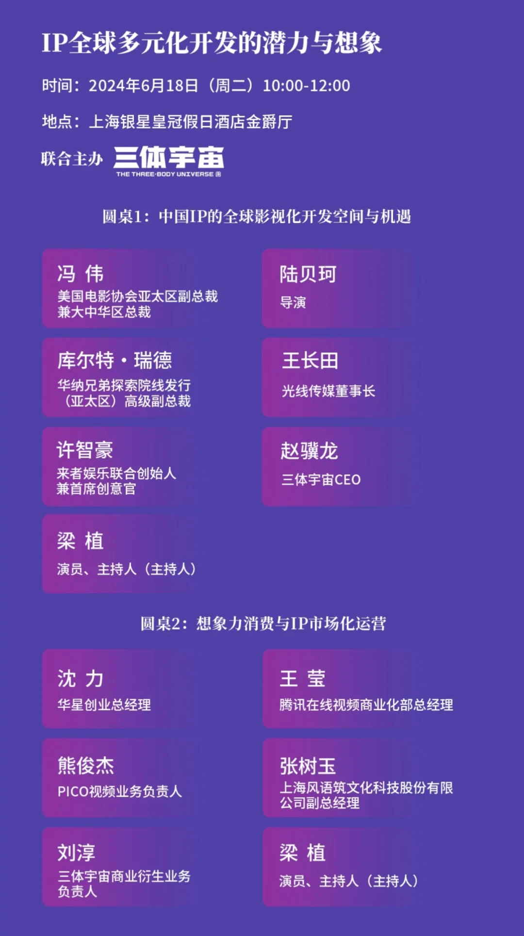 6月18日上午10時,由三體宇宙聯合主辦的金爵電影論壇“IP全球多元化開發的潛力與想象”將在銀星皇冠金爵廳舉行。屆時三體宇宙將透露有關三體IP開發的更多信息。