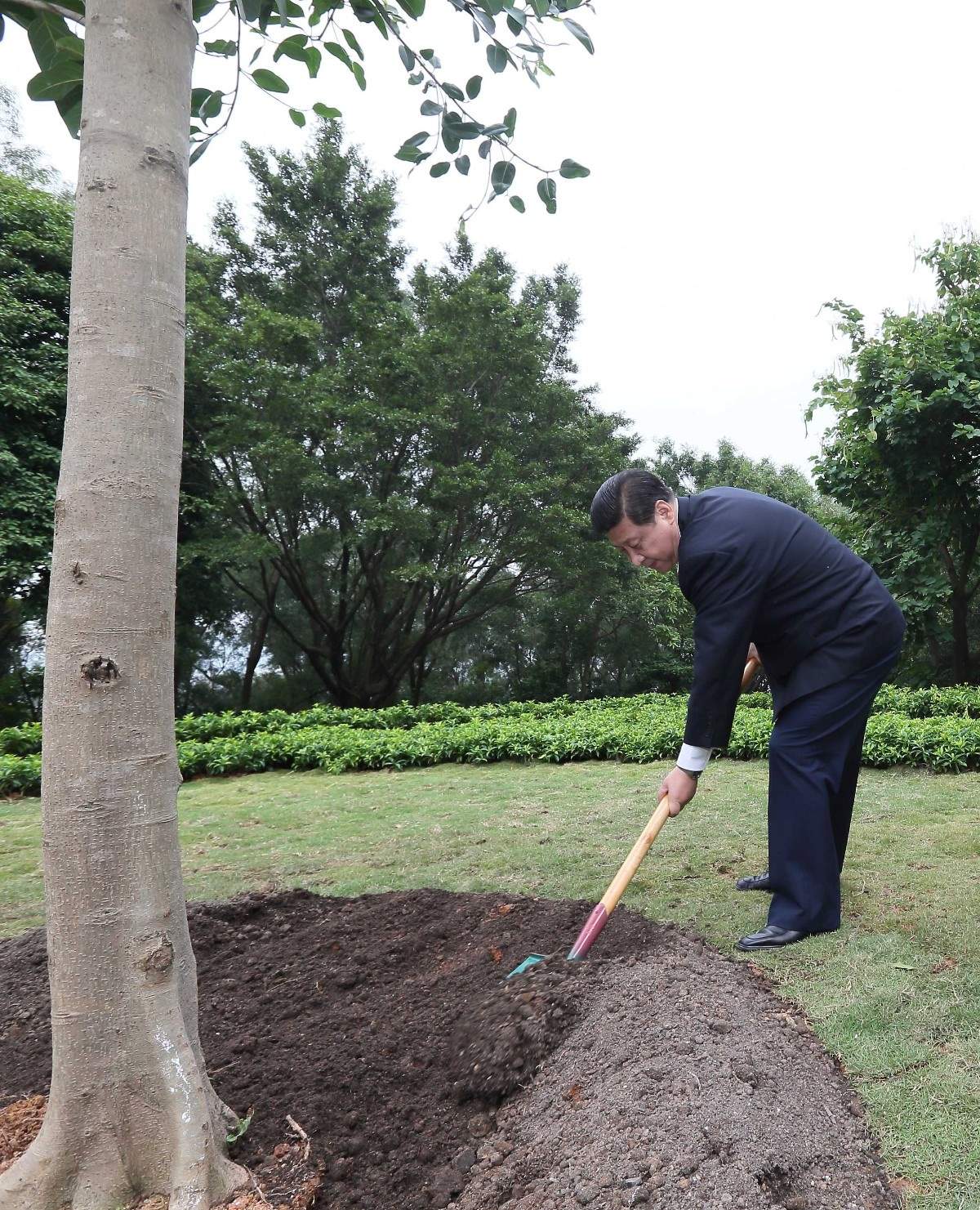 2012年12月8日,習近平在廣東深圳蓮花山公園種下一棵高山榕樹。