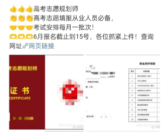 此外,市場上還有大量高考志願規劃師的培訓課程,有的機構宣稱21天就可以成為高考規劃師,並聲稱考試“包過”,以此來吸引報名人員。