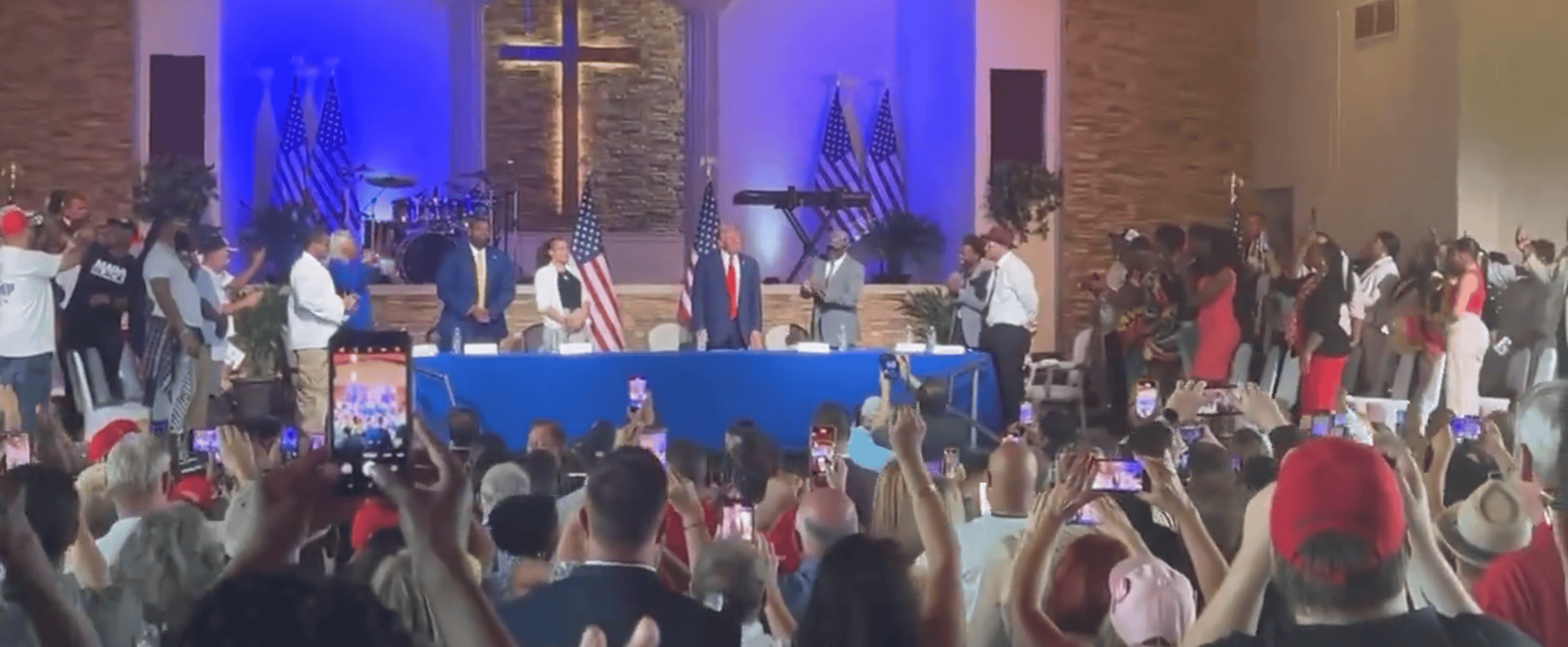 特朗普在韋恩縣一個低收入社區的黑人教堂裏 圖源:社交媒體
