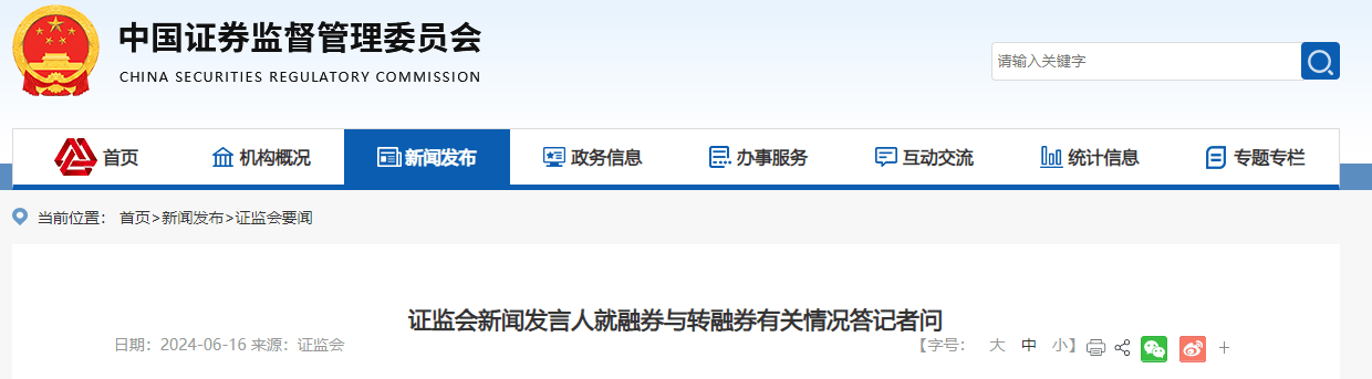 據證監會網站16日消息,證監會新聞發言人就融券與轉融券有關情況答記者問。
