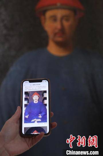 觀眾在展廳裏對比不同的康熙肖像畫作。中新網記者 張亨偉 攝